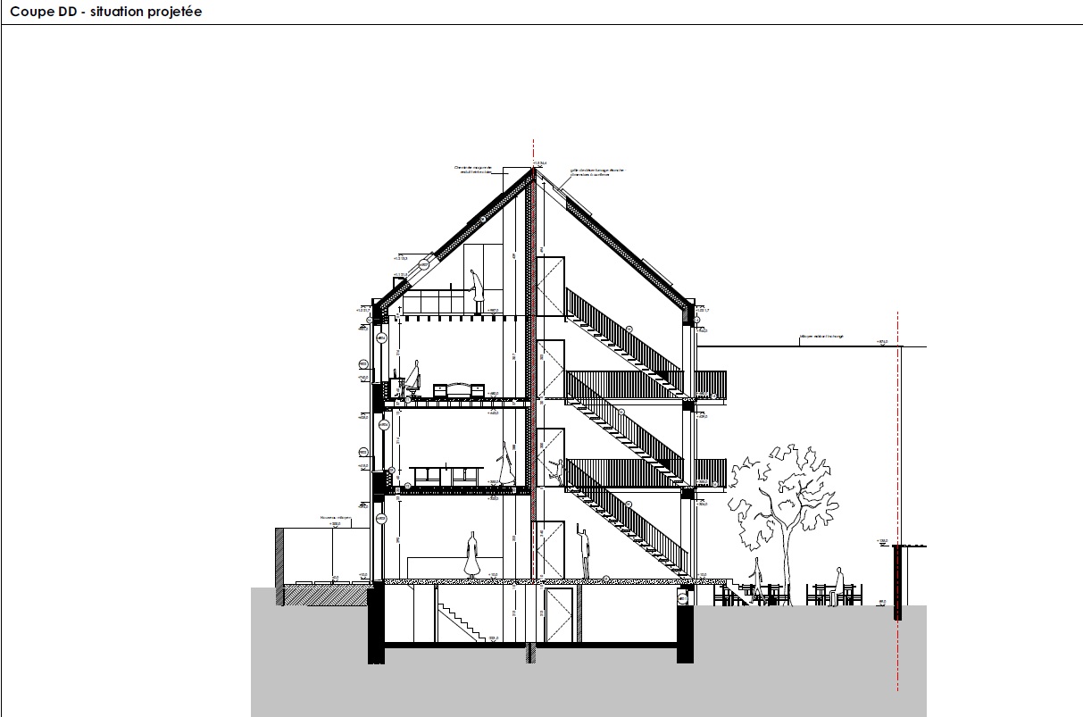 Le permis d’urbanisme a été délivré en août 2024, et un nouveau permis est en cours pour passer de 2 à 3 logements - version présentée ici.